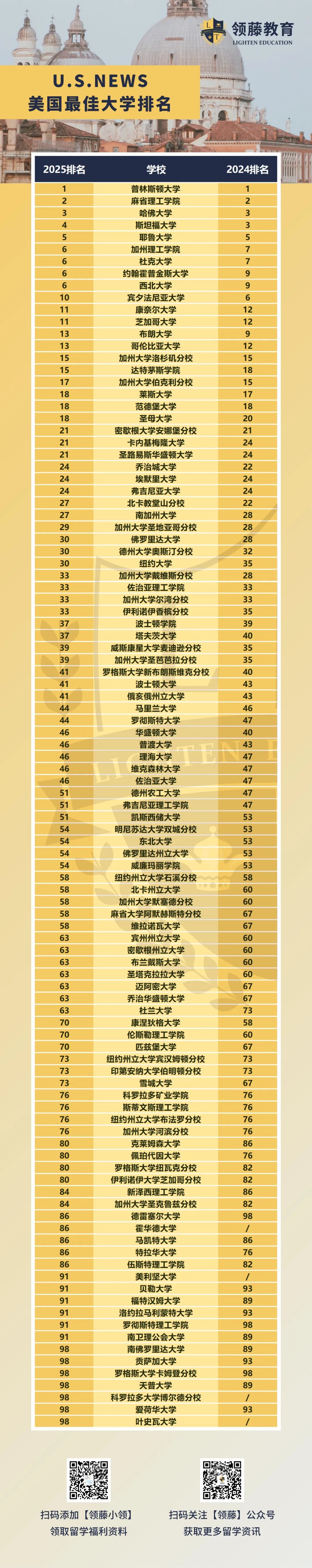 刚刚!期待已久的2025 U.S. News美国大学排名正式发布!