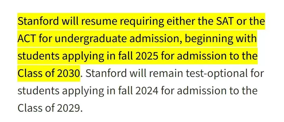 然而,随着疫情逐渐得到控制,以及哈佛大学等顶尖学府相继恢复标化要求,斯坦福大学也做出了相应的调整。